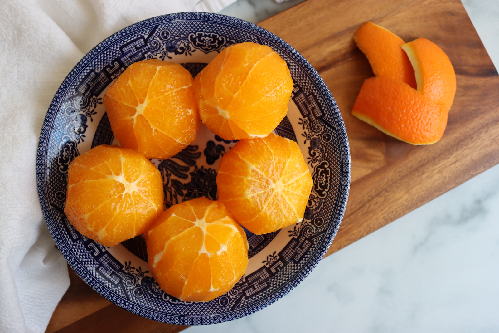 - Peel the oranges, removing the outer zest with a knife. Save the peels for candied orange peel if desired. Go back on a second pass to remove every last bit of white pith, which is where the bitterness hides.